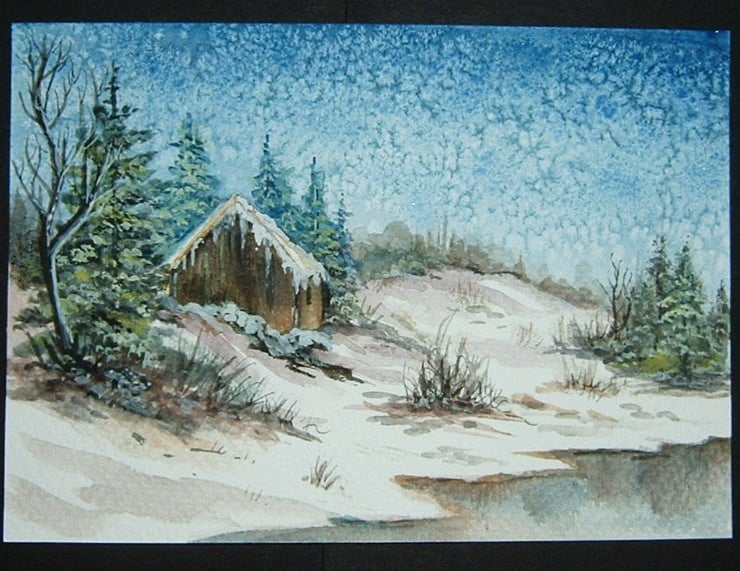 The painting is postcard size, which is approximately 4" x 6".