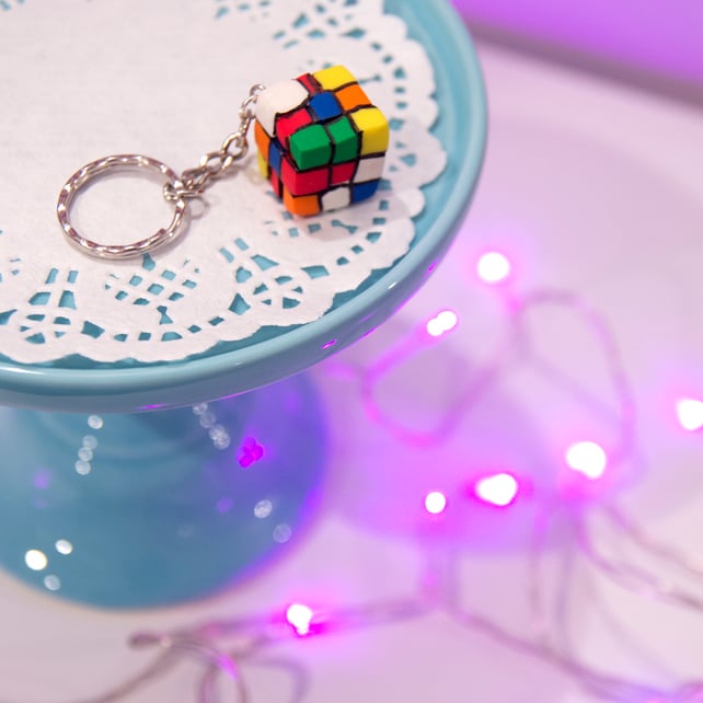 A fabulously bright and colourful Rubick's cube charm, who was able to do these back in the day? Fabulously retro, and unique too!