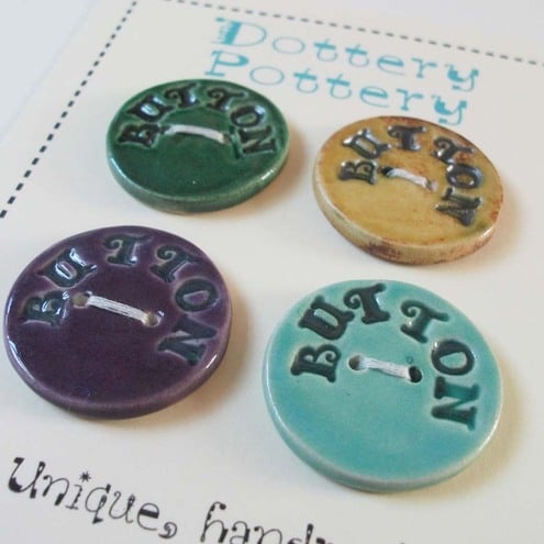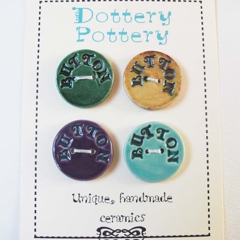 This set of four buttons are made from white earthenware clay, embossed and glazed to 1100 degrees, so nice and strong.