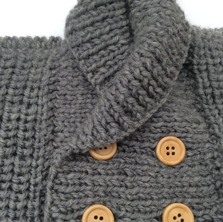 Full set comprises of a double breasted boys jacket with eight wooden buttons