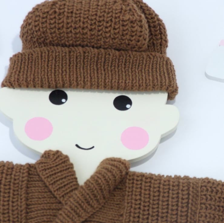The mitts are attached by a cord through the jacket. The little hat is pull on. have the incy