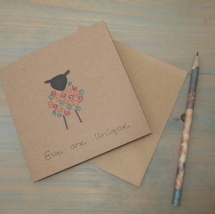 Inspired by sheep and colourful personalities. Sheep are always popular and what better way to tell someone that they are special and unique than by sending a handmade card.