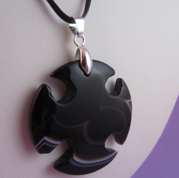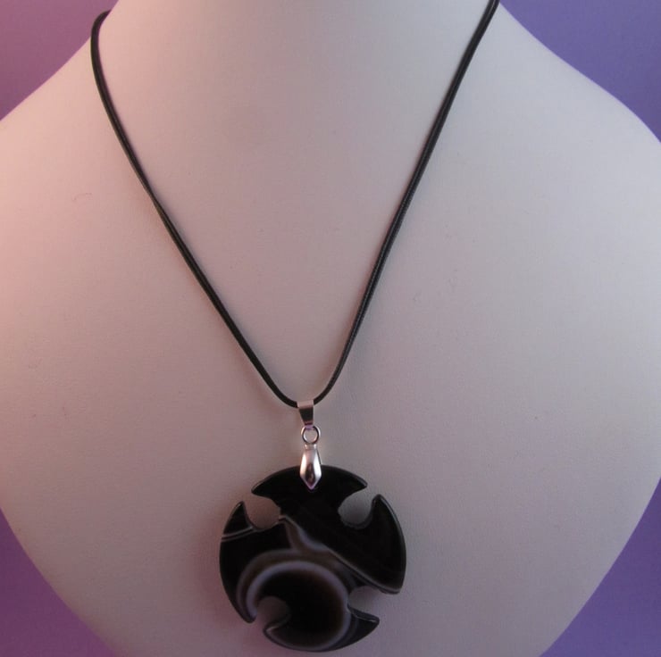 This is a stunning black brown agate cross pendant necklace. It is created with a real black brown agate cross gemstone, silver plated brass, silver plated copper, black waxed cord and a real black agate gemstone on the extender. This is so unusual, and would really go with jeans or any casual wear.