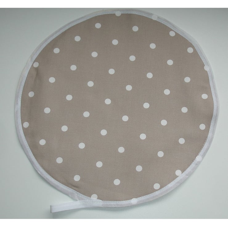 Aga Hob Lid Mat Pad Hat Round Cover Surface Saver Taupe Brown White Polka Dots
