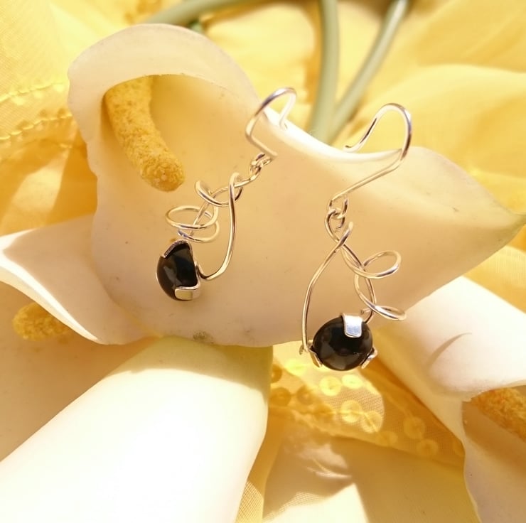 Hand made sterling silver earrings set with onyx. Comes in a gift box matching items available. Gemstones vary by nature, other gems available on request.