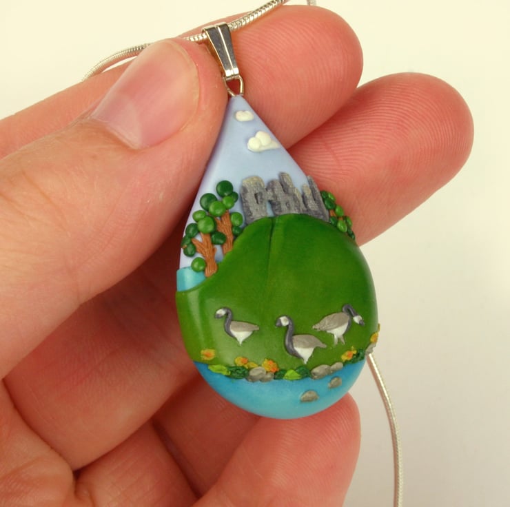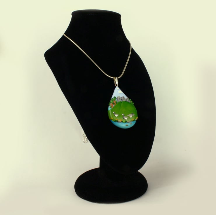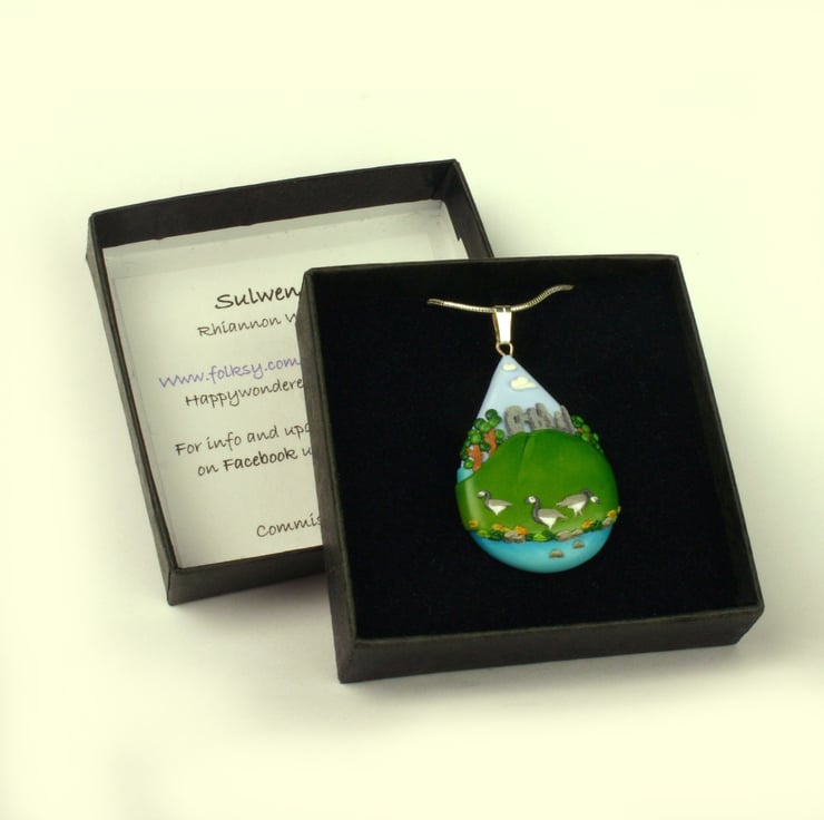 As you can see in the first picture i have updated its jewellery finding to look smarter so that it now has a silver plated bail glued to it, with the same 18 inch sterling silver snake chain. It is entirely handmade in Polymer Clay using different coloured clay's, without the use of paint, and is then coated with a silk varnish. It is presented in a smart black gift box.