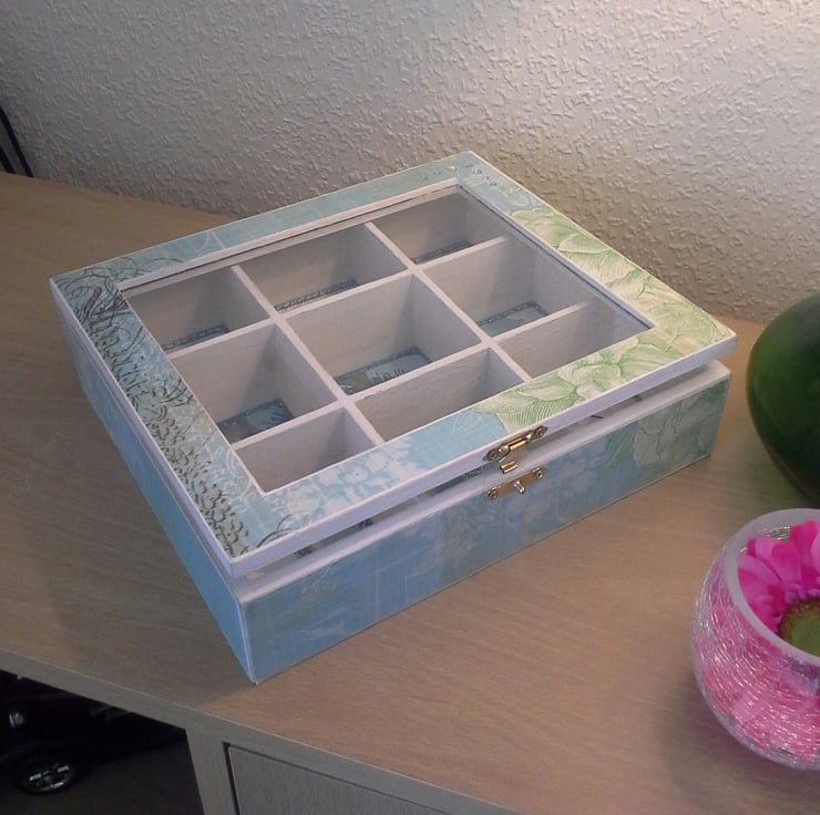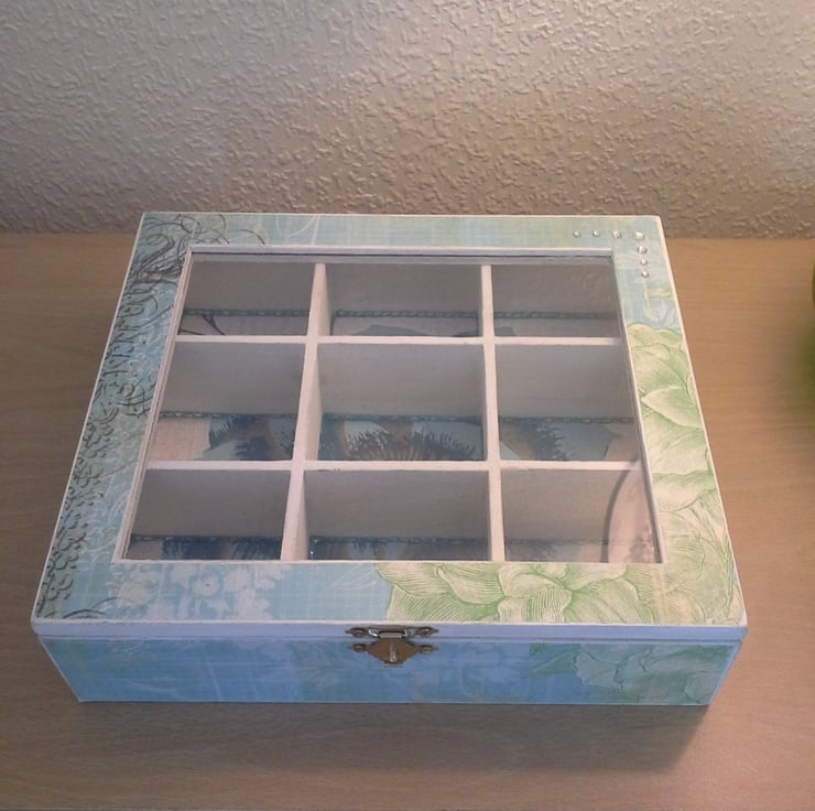 This sweet decorative box is ideal for keeping your trinkets, jewellery or keepsakes in and with its glass lid could also be used as a pretty display case.