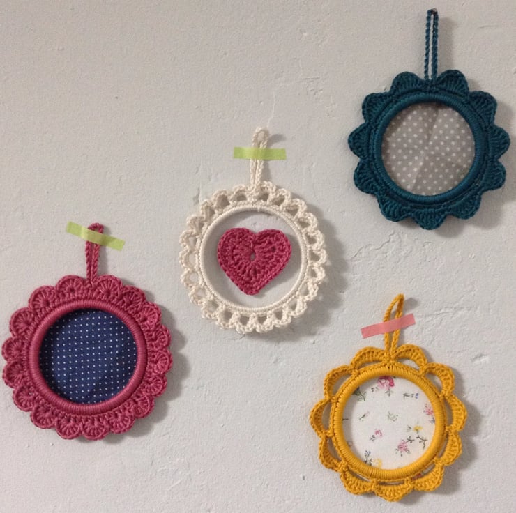 Perfect for framing a snapshot photo, or a treasured scrap of vintage fabric, this crocheted frame would make a lovely housewarming gift.