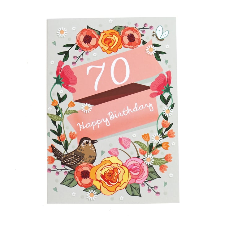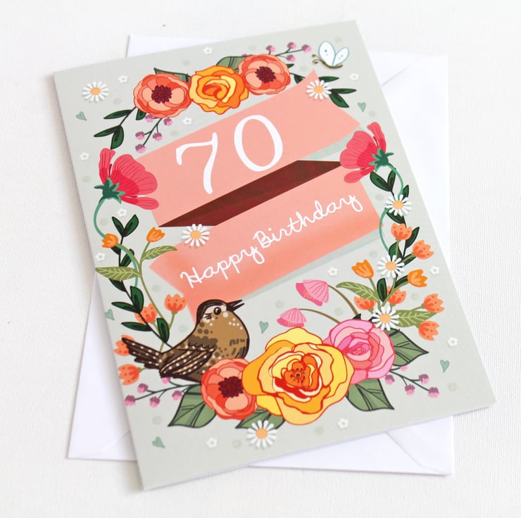 70th Birthday Card - Large, A5 (148x210mm) with white envelope