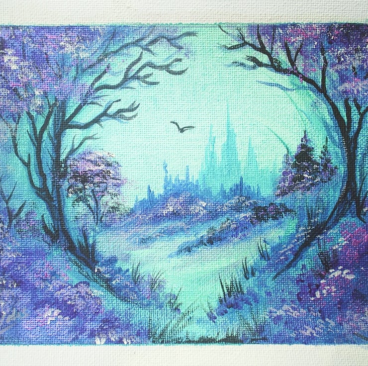 fantasy landscape acrylic art painting 7x5 original ref 162