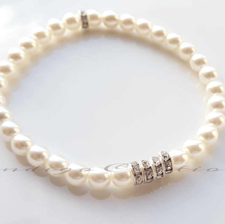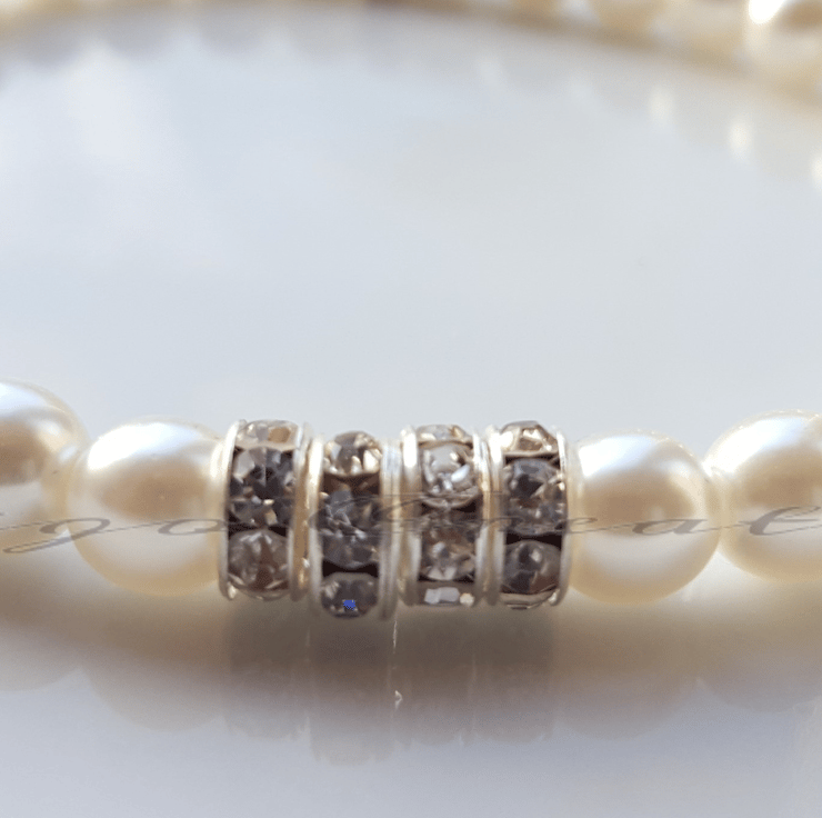 This beautiful, elegant pearl bracelet with crystal rhinestones would be the perfect gift for a bride or bridesmaid. This item is elasticated.