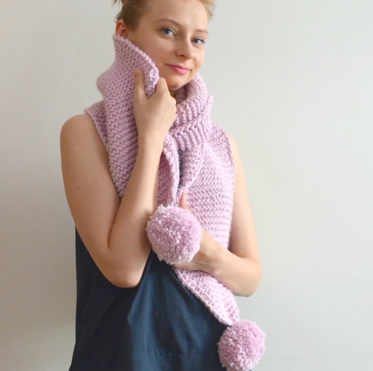Love the design but don't care for powder pink? Create your own scarf! Take a look at the last picture of colour choices. Pick the colour for your scarf, pick the colour for the pompoms and message me. I will check the yarn availability and let you know how long it will take to make your custom scarf (1-2weeks approx.)If you're happy to go ahead, a custom listing will be created for you to purchase and I will start knitting!