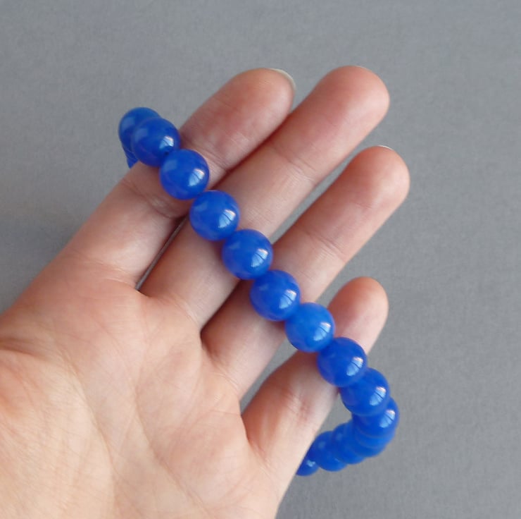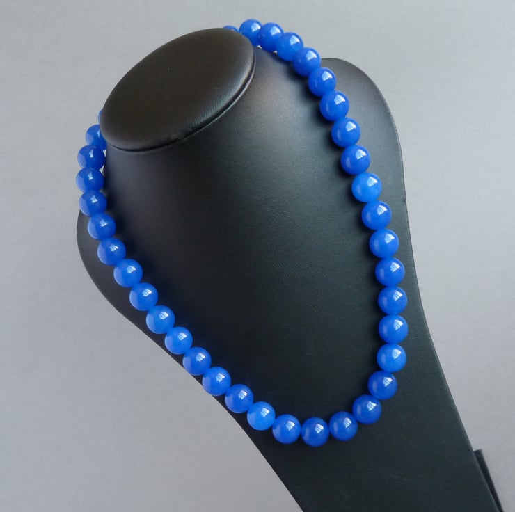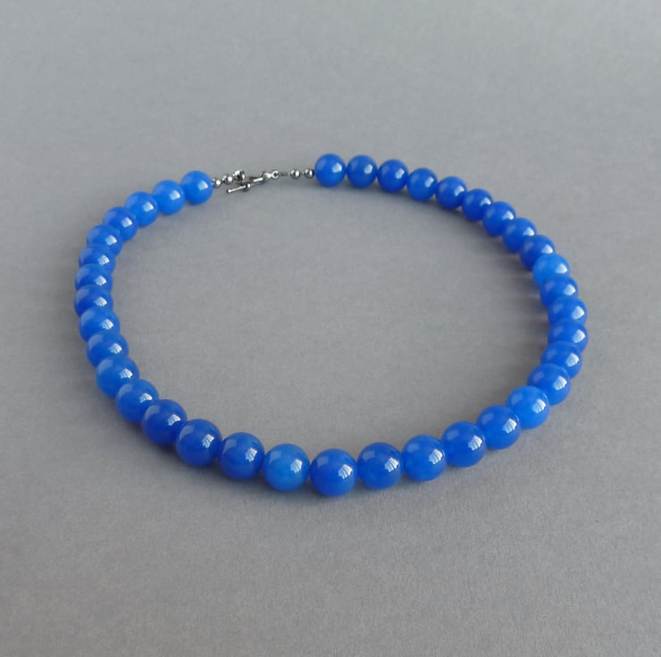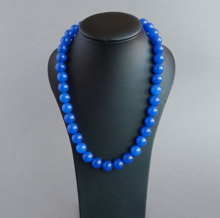 This chunky, royal blue necklace is perfect for making a statement. Created using dyed, cobalt blue calcite beads, this necklace would look great with black, navy, white, grey, red and blue.