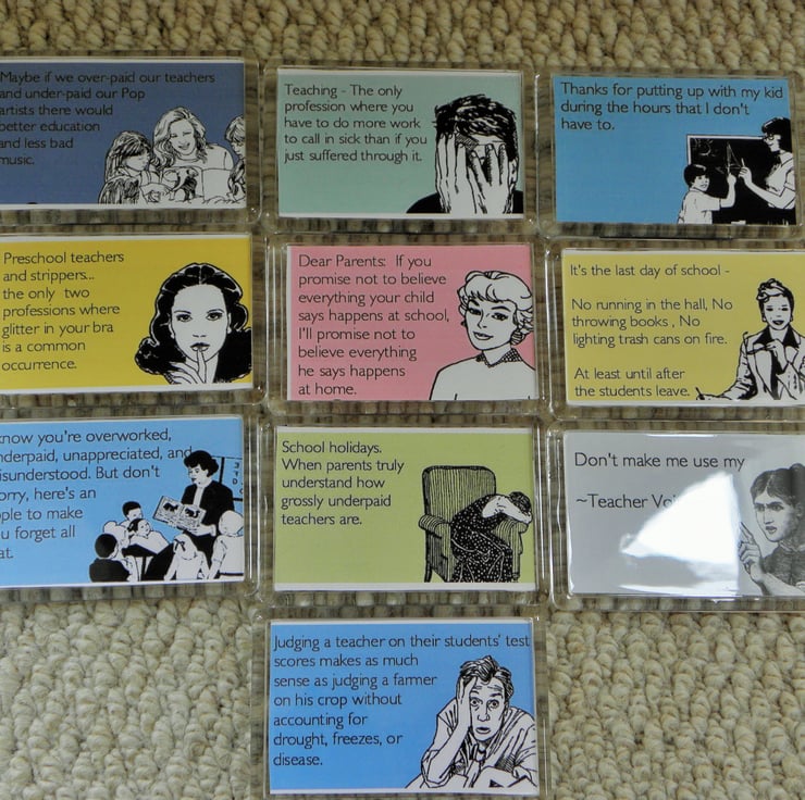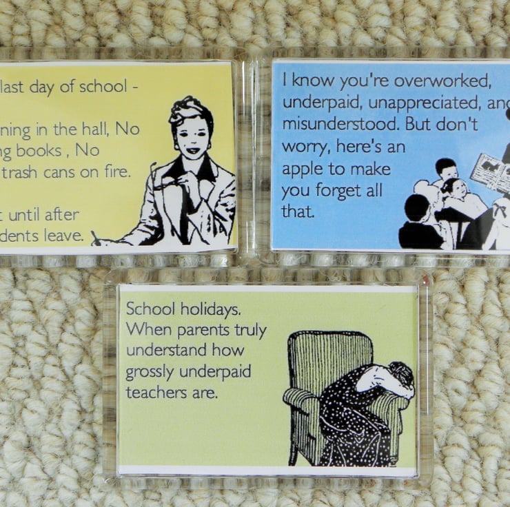 This set of 3 humorous magnets are a great way to show appreciation to your child's teacher, and let them know you appreciate the demands of their job!