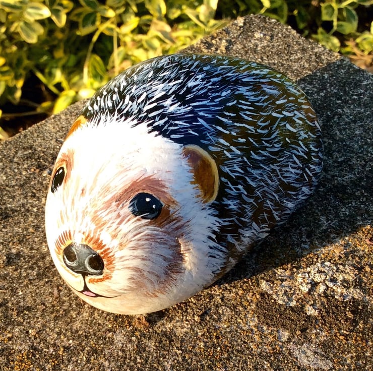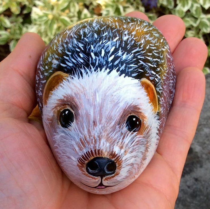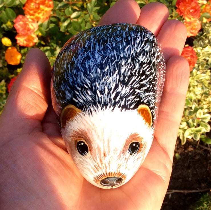 This hedgehog has been hand painted onto a smooth stone and glazed for a glossy protective finish suitable for outdoor use. It will be sent second class signed for. Thanks for looking