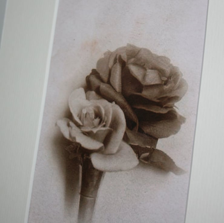 This print comes with a white 7x9" professionally cut mount board surround, ready for you to choose a frame and display. Its shows 2 flowers in an elegant vase.