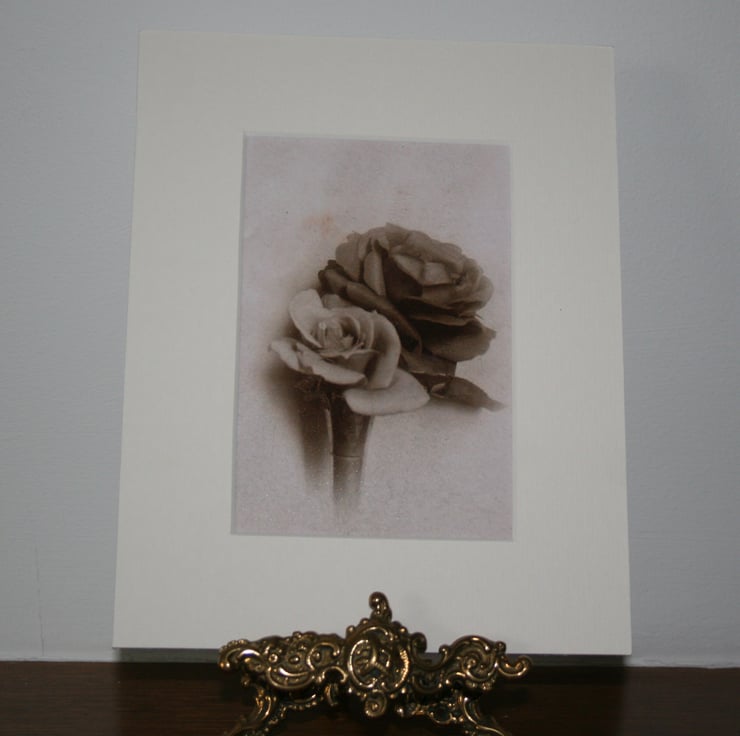 This print comes with a white 7x9" professionally cut mount board surround, ready for you to choose a frame and display. Its shows 2 flowers in an elegant vase.