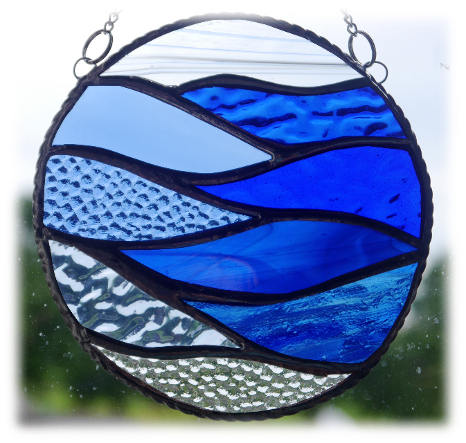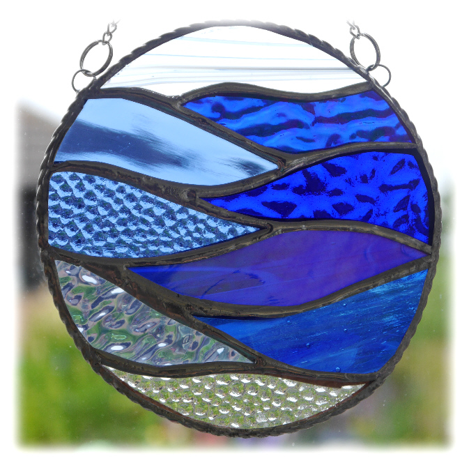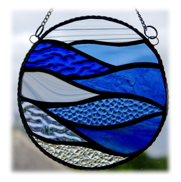 I've formed the waves into a circle and used lots of types of gorgeous blue textured glass plus some white and blue streaky glass for the effect of the froth of the waves. The bottom wave is crystal clear to depict the waves breaking on the shoreline.