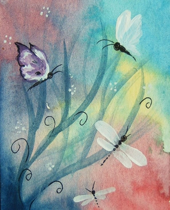I love to paint fantasy and this is an aceo original dragonfly and butterfly painting that has been created using quality materials. It will come in a clear polybag to protect it. This is an original and not a print. An aceo is a miniature painting that measures just 2.5" x 3.5" and is highly collectable. It can be framed or displayed in a photo album.