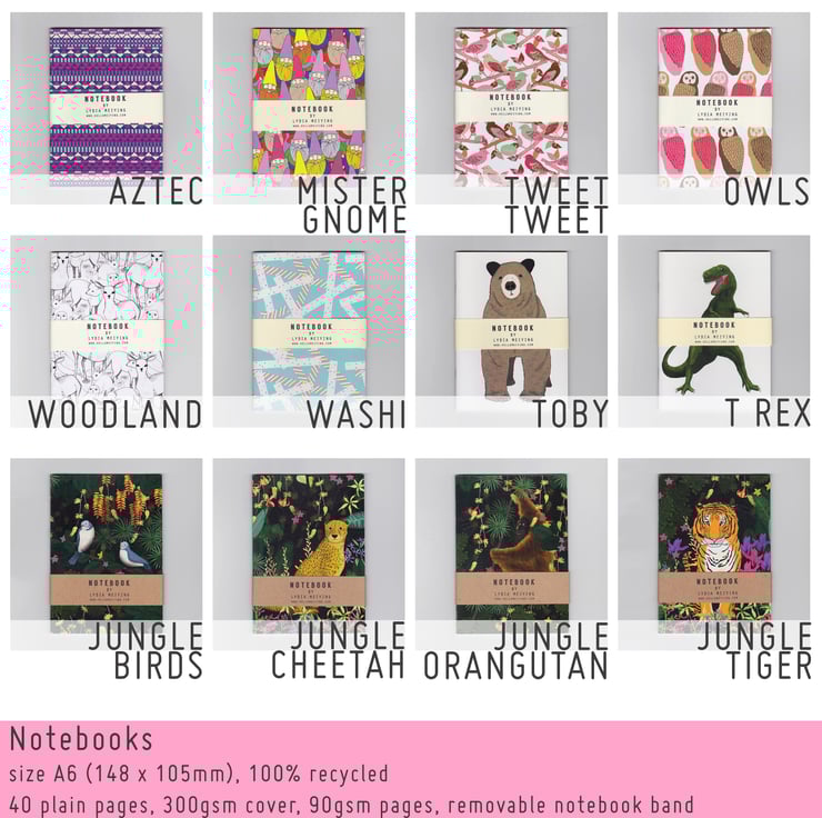 Please choose one Tote Bag, one Notebook and one Greetings Card from the list below or you will receive a surprise!