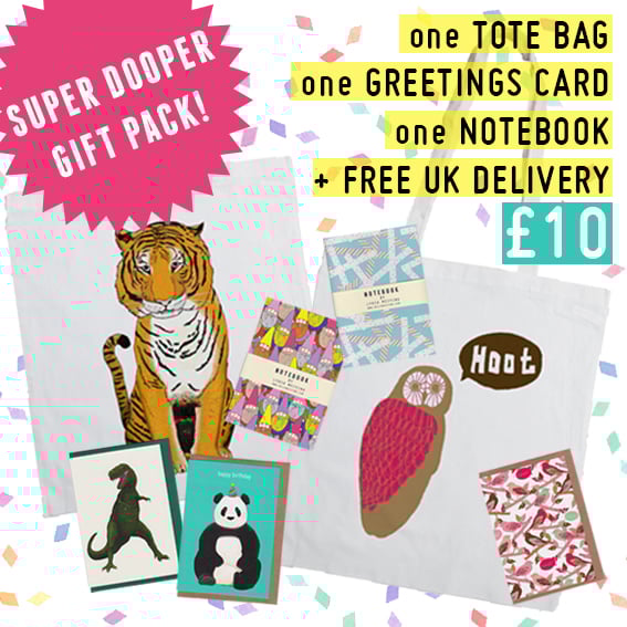 one Tote Bag, one Notebook, one Greetings Card, plus free UK delivery