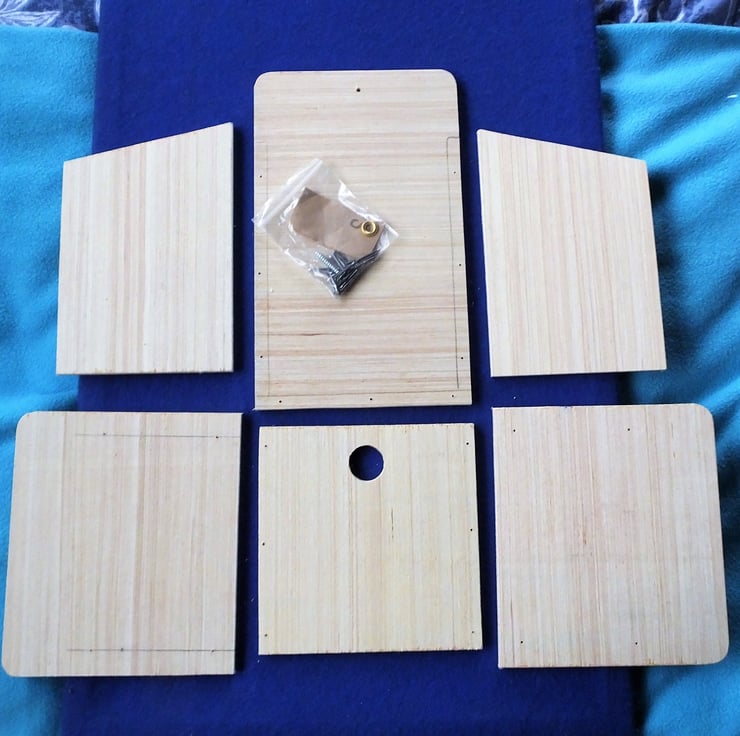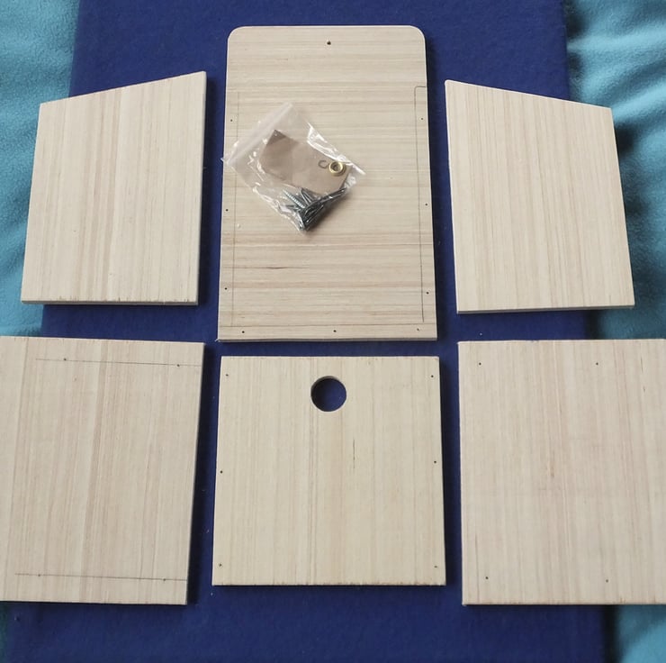 I have been asked to provide many bird boxes in kit form, so that Mums & Dads can make the little birdy box with their children. This one is for a bird that prefers to use a box with a closed front and small hole.