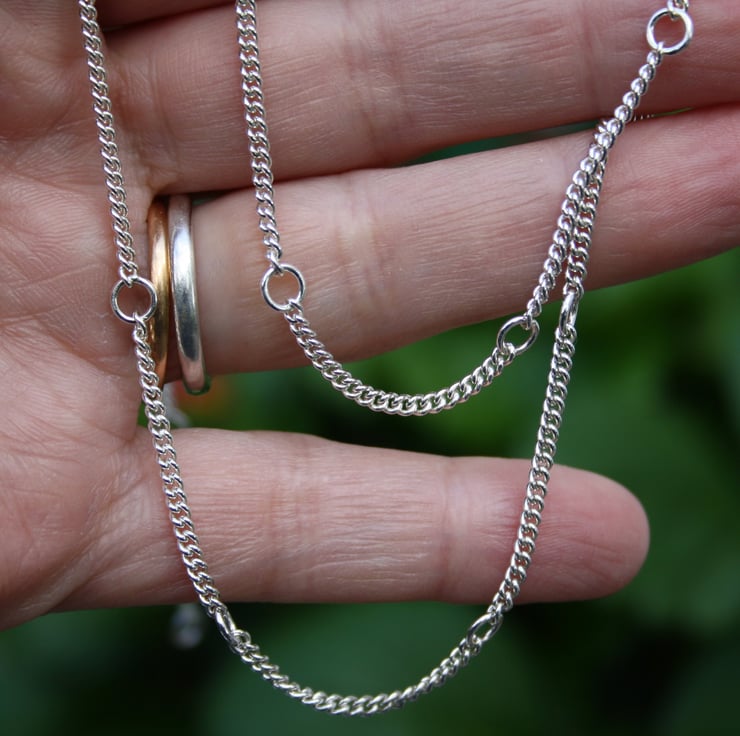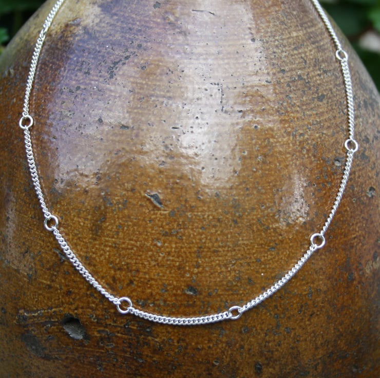 A simple silver necklace chain that is a bit different .