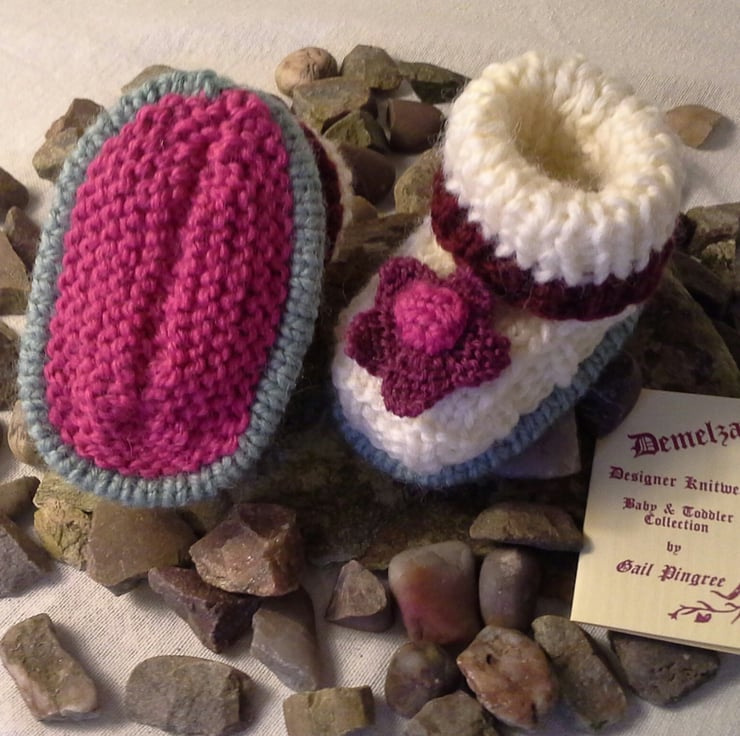Luxury Hand knitted  Merino Wool Girls Booties 0-3  months