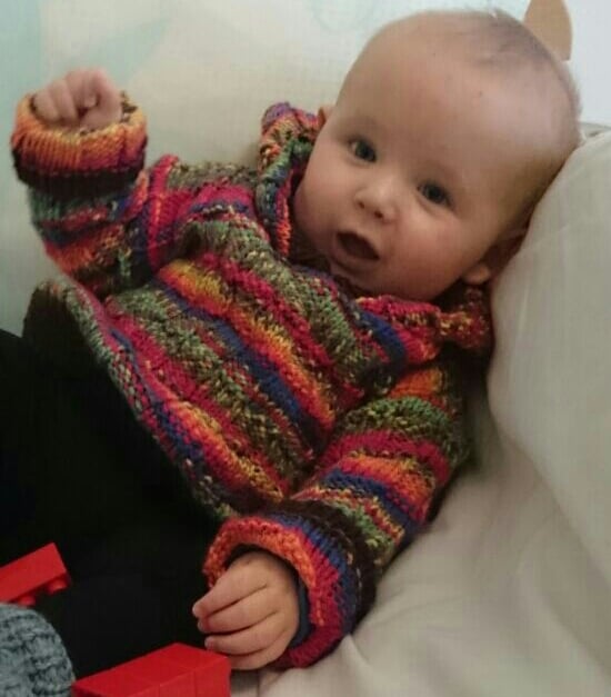 Baby knitwear is designed and hand crafted by Demelza Designs in Cornwall meeting UK baby safety standards, Only branded premuim acylic, acrylic/natural fibre blends or pure natural fibre yarns are used in baby knitwear which conforms to BS984/76 standards.