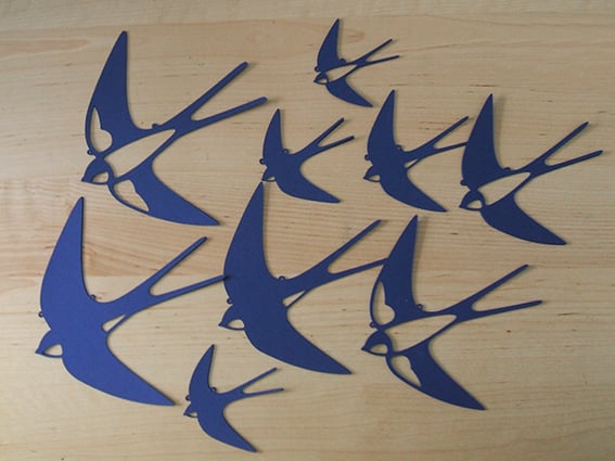 This set comes with 3.5m of ribbon and allows you to arrange the birds in any formation you like, you could choose a symmetrical layout (as in the photo) or they could all fly in the same direction.