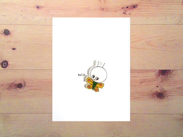 Hand drawn shrink plastic butterfly on an A6 white card with envelope.