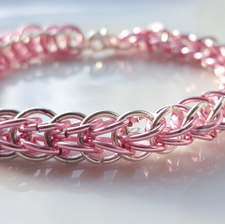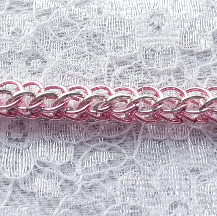 Beautiful Half Persian Link Chainmaille Bracelet. Made with rose pink and silver plated jumprings.