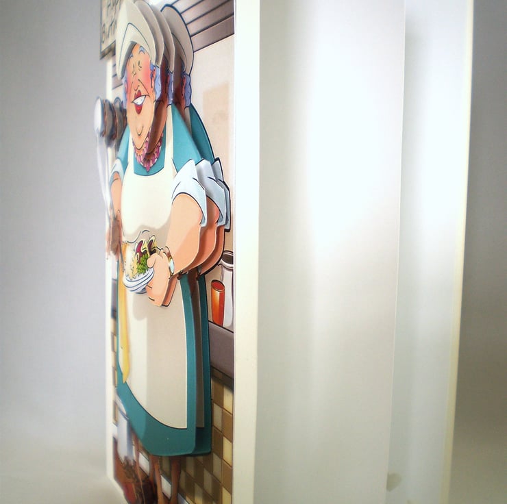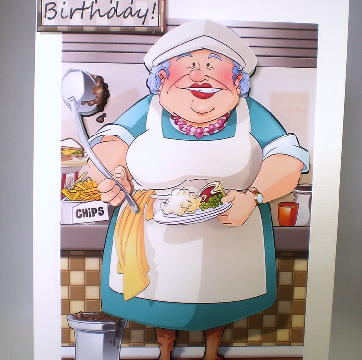 design of a dinner lady or a cook. This would be an ideal card for a birthday or retirement as well as a thank you to your favourite dinner lady at school.
