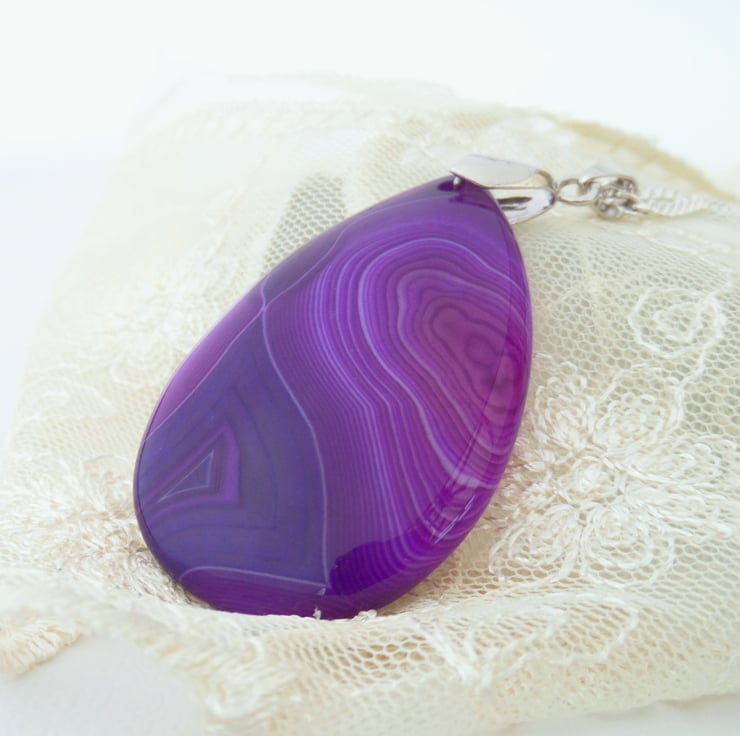 I lovely teardrop shaped agate pendant necklace, make from banded agate.