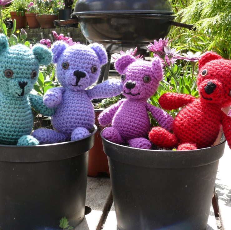 Every bear is handmade by my mum or myself and we take great pride the quality of our work. We make from Style Craft acrylic yarn so Barnabas is washable and can be made to order in a range of bright colours or in more realistic shades. He looks gorgeous what ever his style.