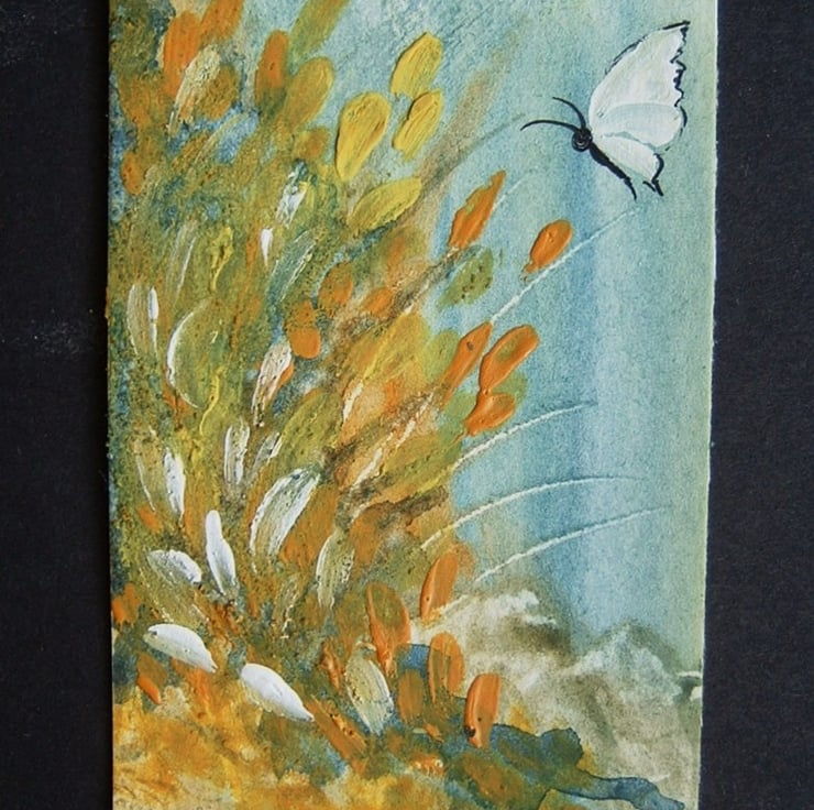 I love to paint fantasy and butterflies and this painting has been created using quality materials. It will come in a clear polybag to protect it. This is an original and not a print. An aceo is a miniature painting that measures just 2.5" x 3.5" and is highly collectable. It can be framed or displayed in a photo album.