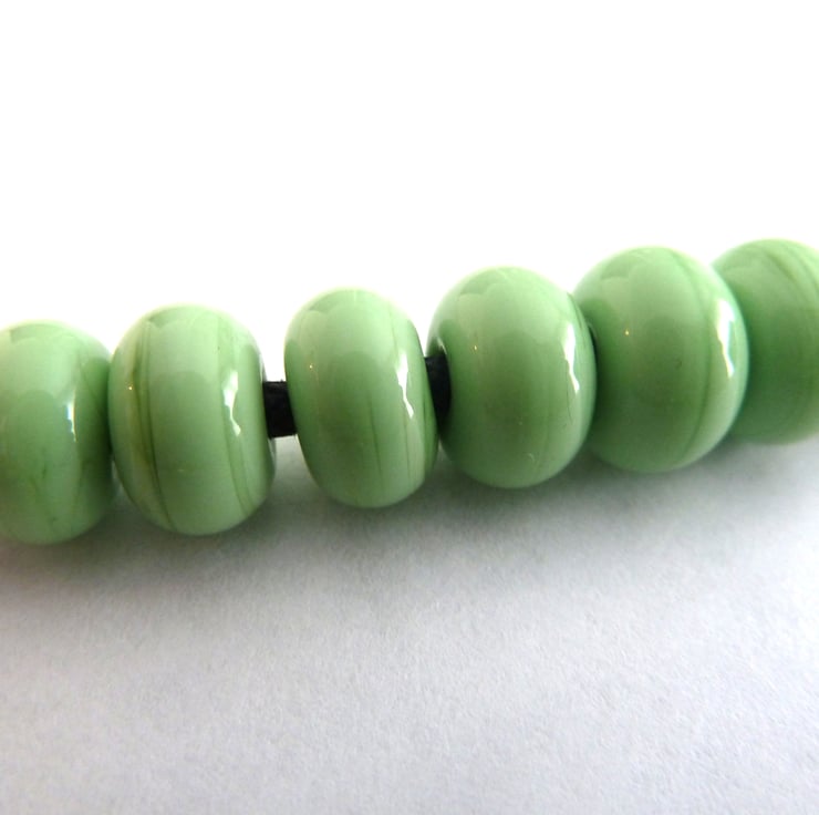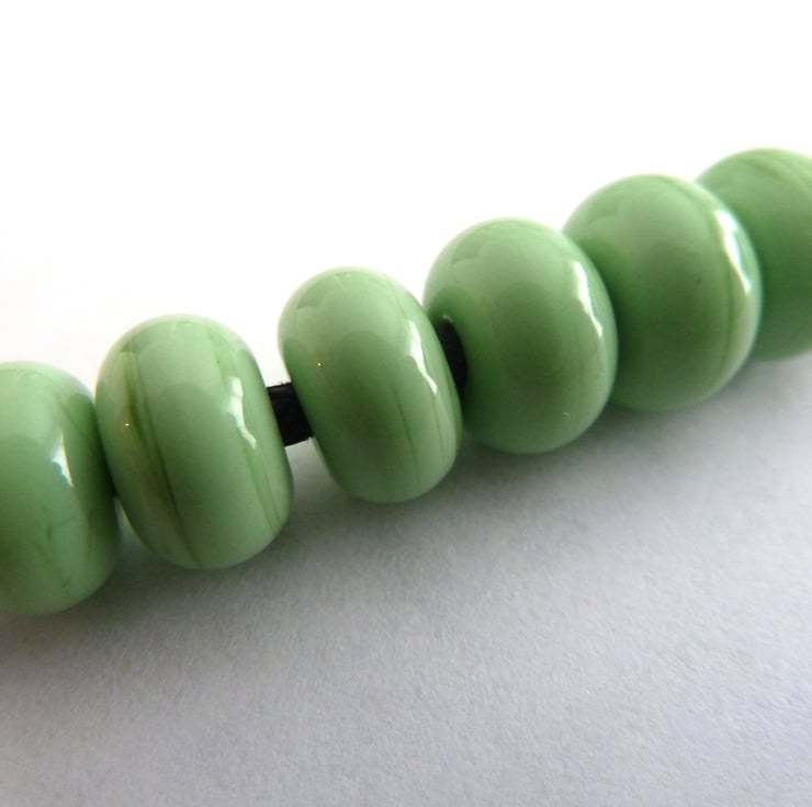 A set of 6 handmade lampwork glass spacer beads made with green glass.