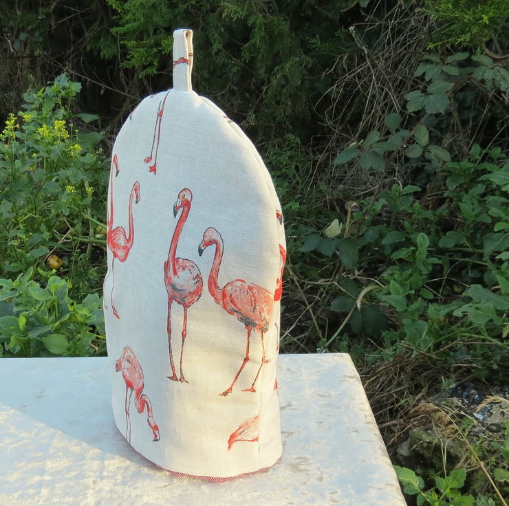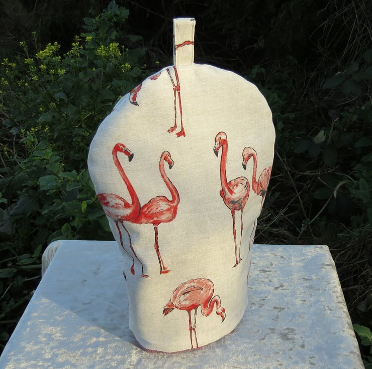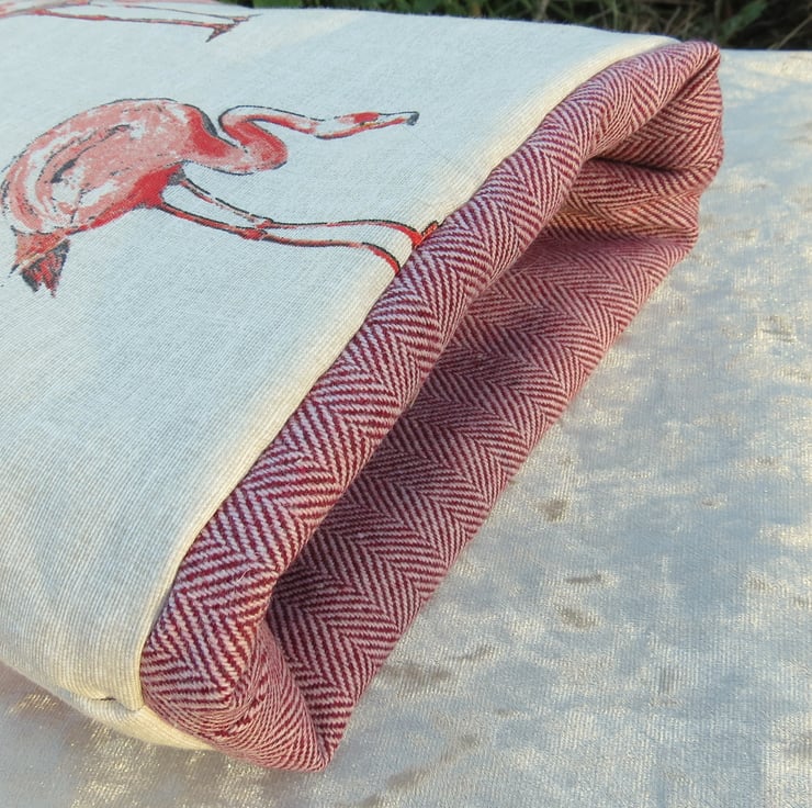 The fabric used is a medium weight linen look cotton, with a flamingo design.