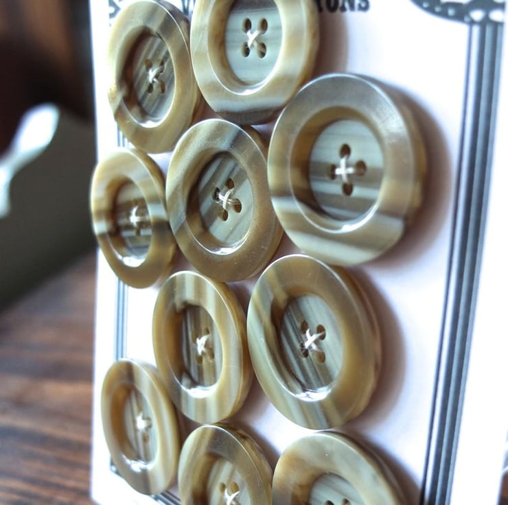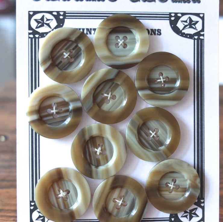 10 Lovely Vintage 'Horn' Plastic Buttons, lovely shades of Caramel and Cream in these, 28mm.