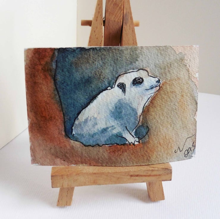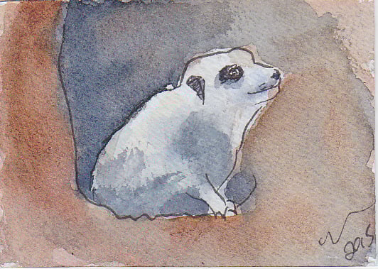ACEO Meerkat Hide Animal Art Original Watercolour and Ink Painting OOAK