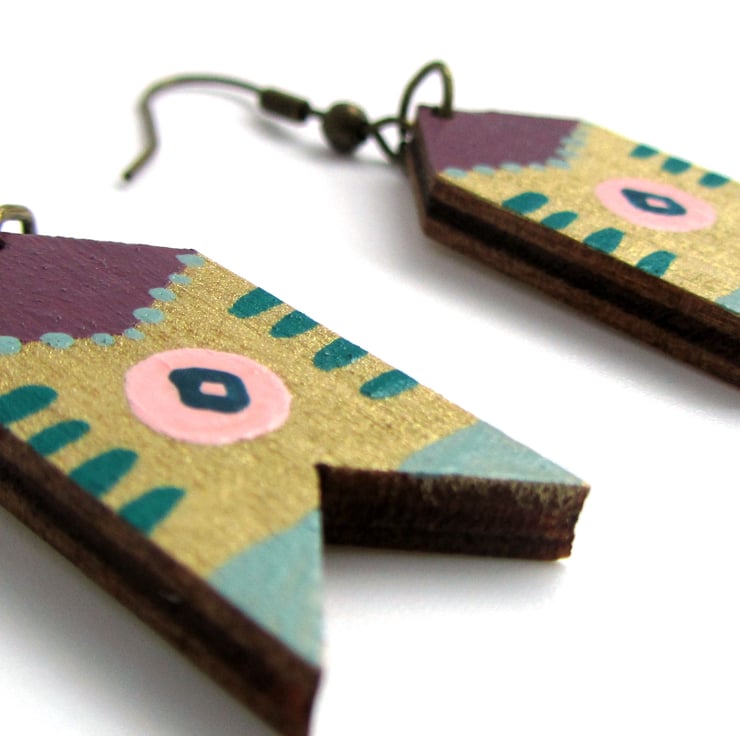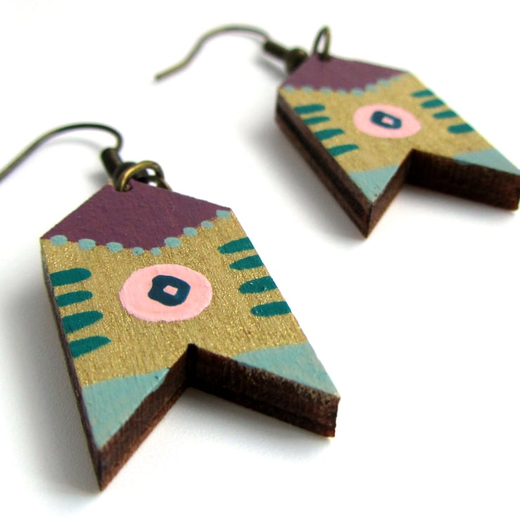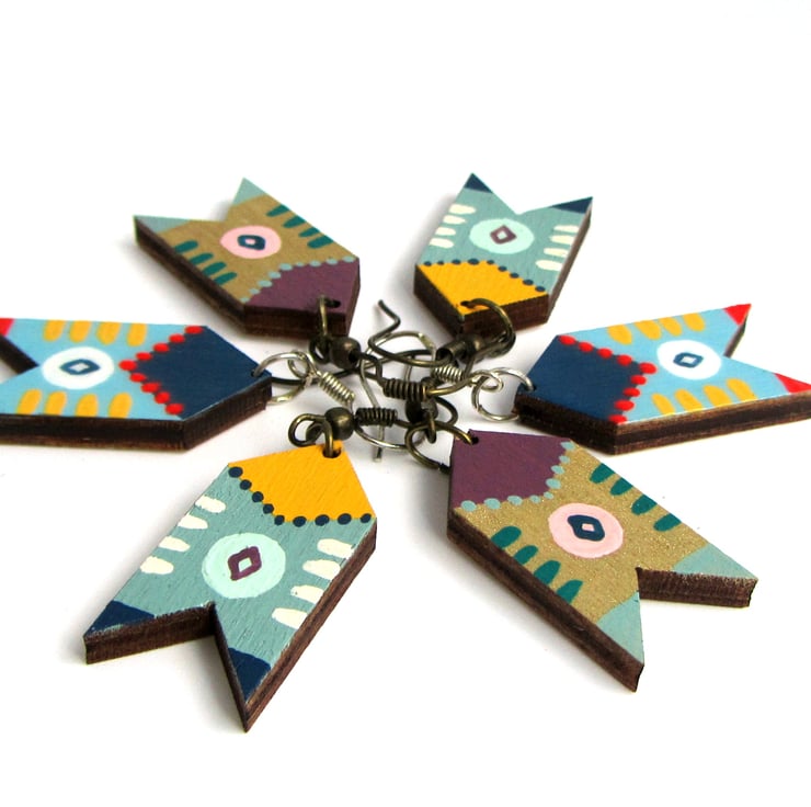 Inspired by the natural world I make contemporary jewellery from wood. Hand painted patterns and illustrations are often featured in my work alongside bold designs, contemporary shapes and colours.