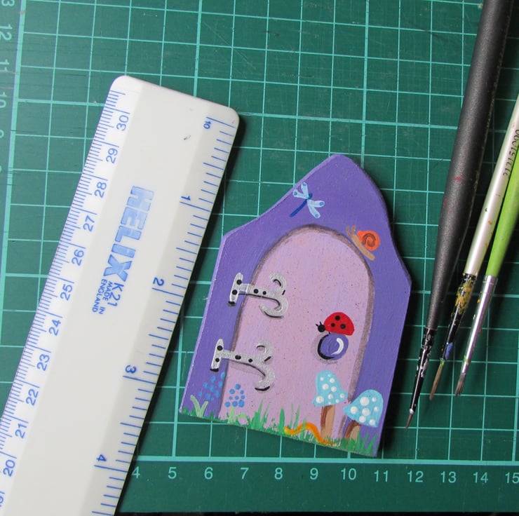 The Door is hand cut from mdf and handpainted with toadstools and little insects.