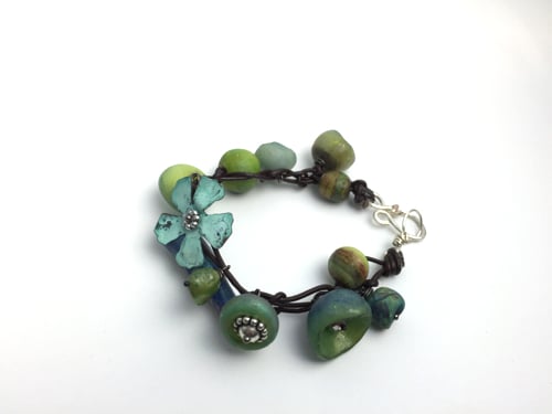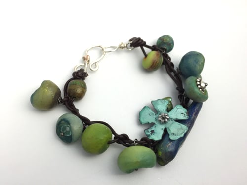 Inspired by the lush greens and woodland browns this bracelet is organic in its form a perfect adornment for all forest sprites.