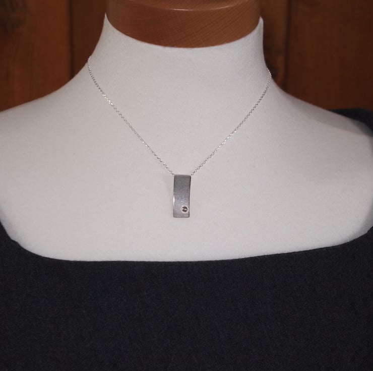 The silver has been burnished to a soft sheen to finish. This pendant comes with a sterling silver belcher chain (choice of 4 lengths available). It hangs from the chain by a tube of silver that is soldered to the reverse of the pendant.