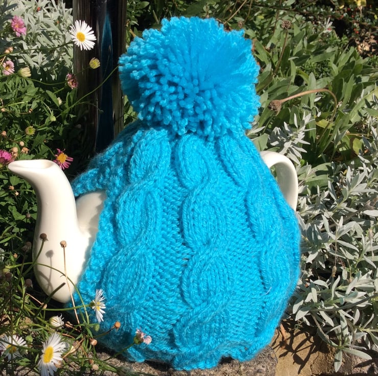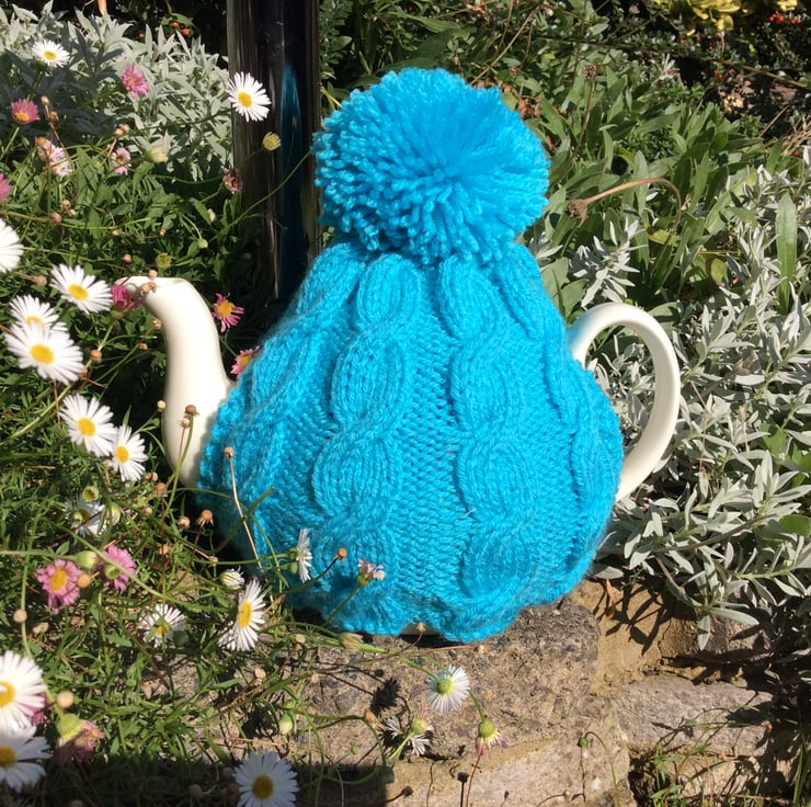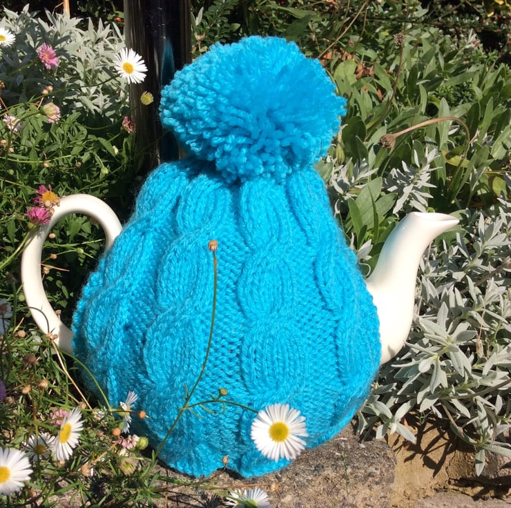 It is designed to fit a good sized 4/6 cup pot, and can be made in larger or smaller sizes if you want. This cosy is made in turquoise blue, but I can make a whole range of colours.