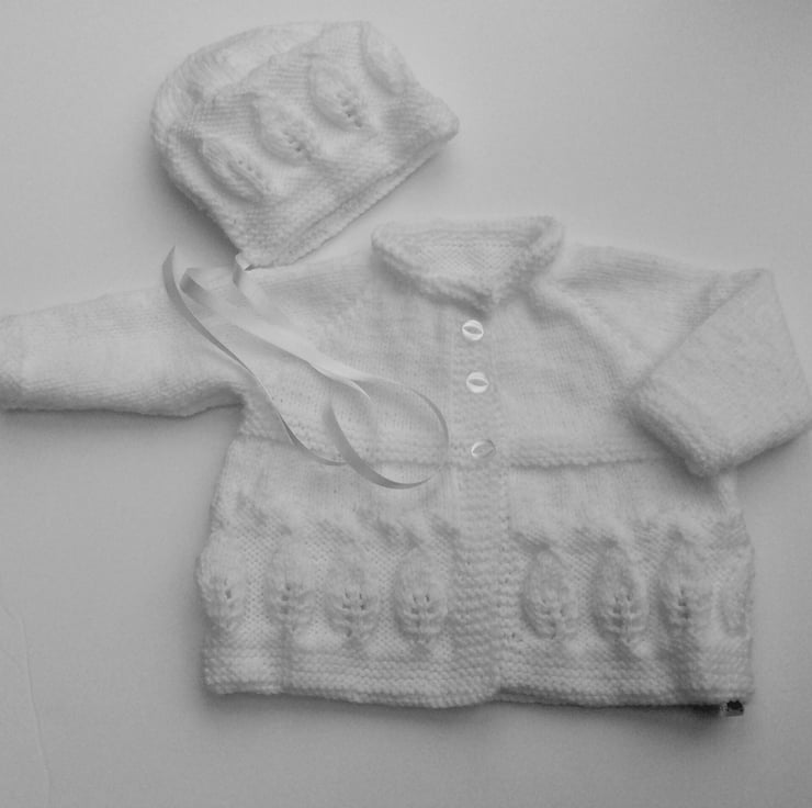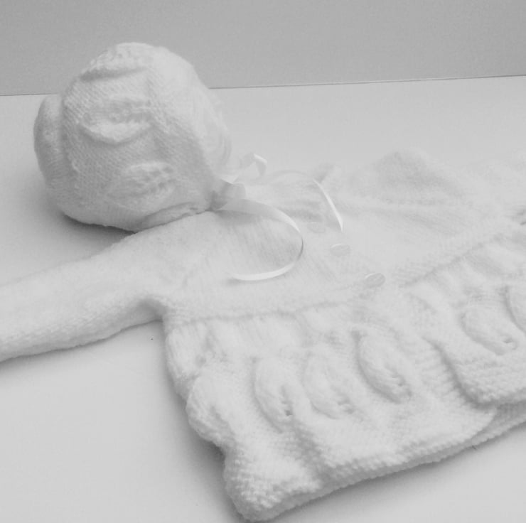 Hand knitted matinee coat and bonnet