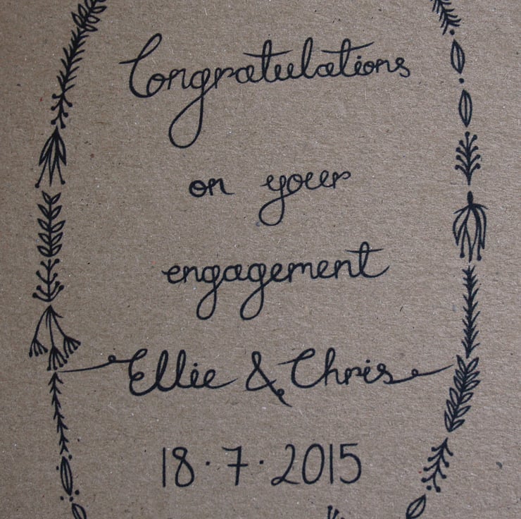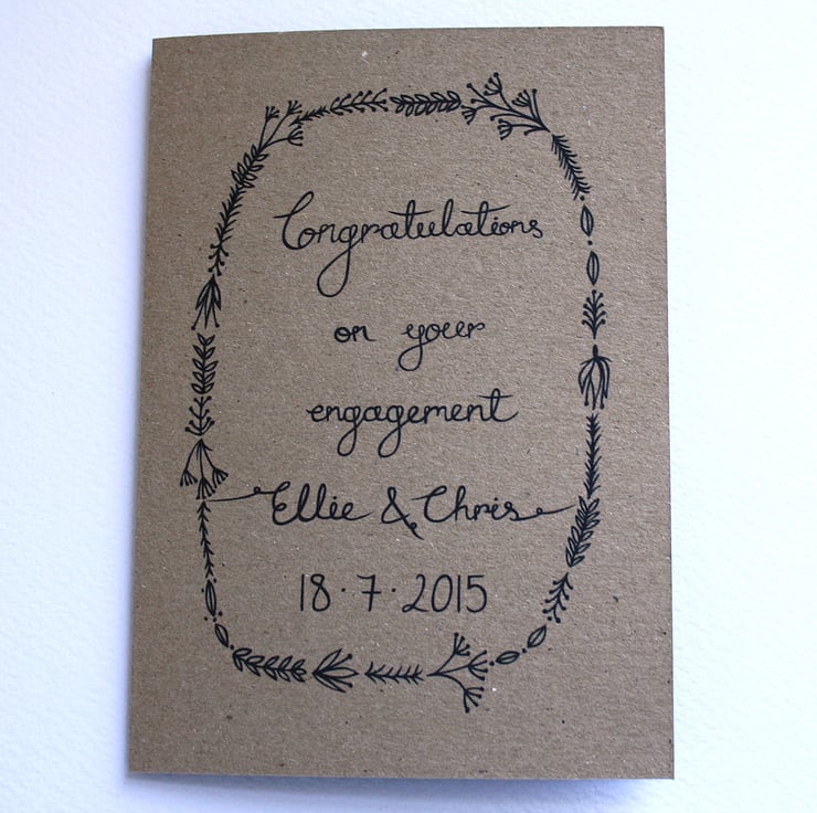 Simple and pretty, personalised congratulations engagement card with pretty hand lettering and a botanical illustrated frame.