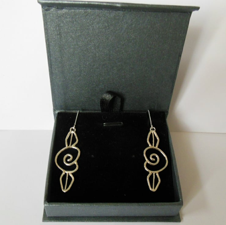 The roses are made from 1.3 mm Sterling wire and have a 4cm drop from attachment. These earrings are presented in a magnetic fastening box.