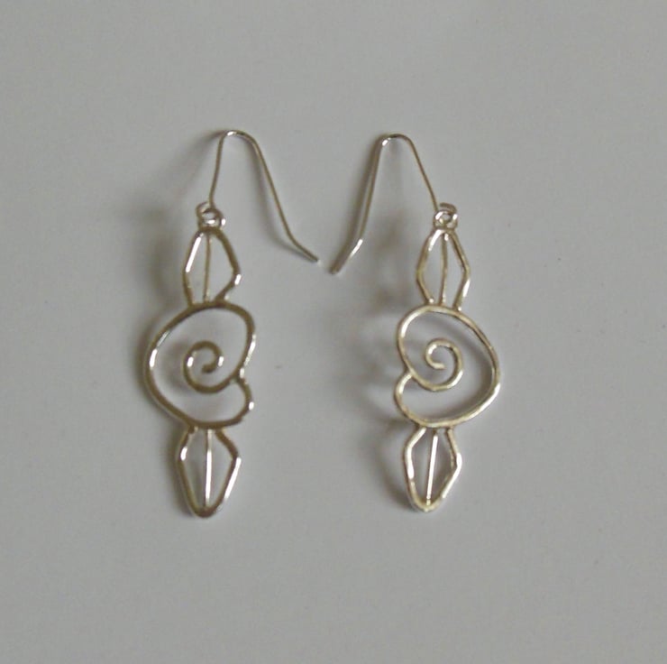 These sterling wire hand formed roses are made from sections of wire which have been shaped and then soldered together with multiple joints and given an authentic hammer finish.The hammer finish gives a lovely textured finish which reflects the light and gives these pieces a slightly rustic look. The roses are hung on hand made Sterling ear wires and then polished.