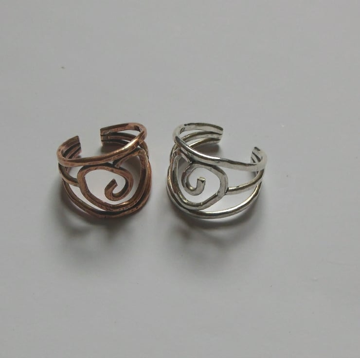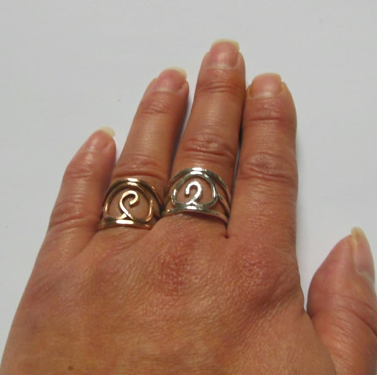 These sterling wire hand formed rose rings are open backed and comfortable to wear.
